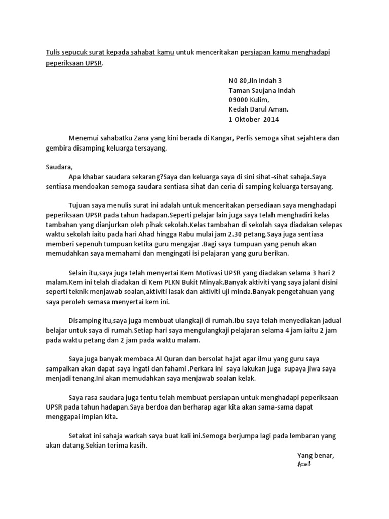 Contoh Karangan UPSR - Surat Kiriman Tidak Rasmi Tulis sepucuk surat kepada sahabat pena anda di luar negara untuk menceritakan pengalaman anda bercuti ke suatu tempat yang menarik No. Contoh Surat Cinta Untuk Sahabat. Contoh surat untuk sahabat pena bahasa indonesia have an image from the othercontoh surat untuk sahabat pena bahasa indonesia in addition it will feature a picture of a kind that might be seen in the gallery of contoh surat untuk sahabat pena bahasa indonesia.